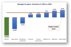 I risultati contenuti nella nuova edizione del Rapporto Intersettoriale sulla Criminalità Predatoria – spiega l’ABI -evidenziano l’efficacia di un approccio coordinato tra istituzioni e settori esposti al fenomeno: nel 2023 le rapine in banca sono diminuite del 35,5%, con cali significativi anche nelle tabaccherie (-23,0%) e presso i distributori di carburante (-12,1%).