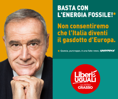 Quali sono dunque le promesse che Greenpeace mette in bocca ai candidati leader? Nella campagna di comunicazione di Greenpeace, Silvio Berlusconi promette di raddoppiare le rinnovabili in tre anni mentre Emma Bonino promette di opporsi ai trattati Ttip e Ceta. Luigi Di Maio si batte per lo stop ai diesel entro il 2021 e Pietro Grasso promette che l’Italia non diventerà il gasdotto d’Europa. Giorgia Meloni vuole vietare la plastica usa e getta, Matteo Renzi dice che avremmo dovuto votare sì al referendum sulle trivelle di due anni fa e Matteo Salvini chiede acqua pulita, non come quella contaminata bevuta in Veneto per anni. Sono promesse che piacciono? Tranquilli: nessuna di queste è vera.