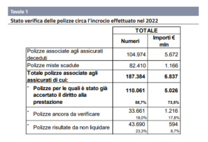 Per gli anni precedenti al 2022 rimangono da verificare 84.403 polizze, per un totale di 1,5 miliardi.
