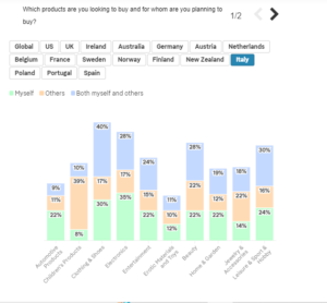 Negli acquisti durante il Black Friday, prodotti e articoli per bambini sono quelli più gettonati per i regali mentre elettronica, abbigliamento e calzature di solito rappresentano un acquisto fatto per se stessi.